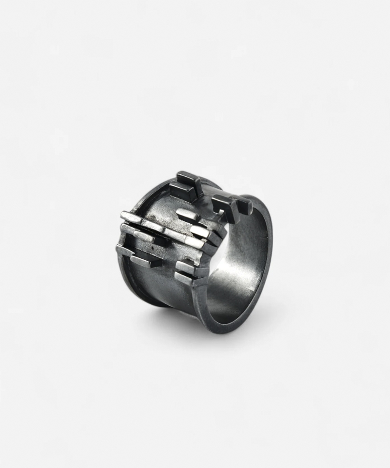 Кольцо Ring Brutalism V.3 в стиле архитектурного брутализма c матовым чернением.