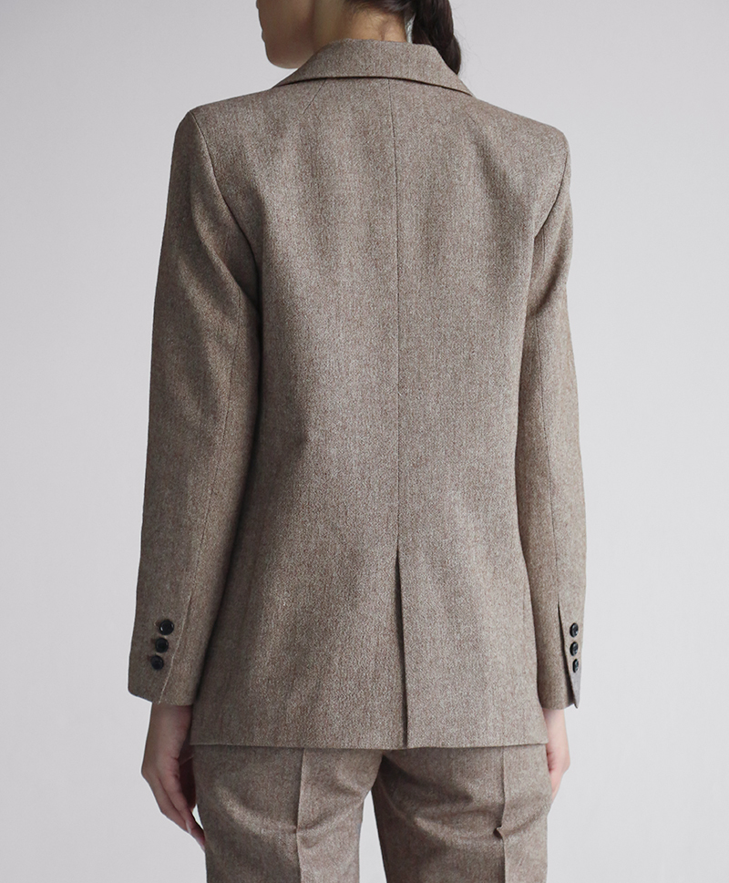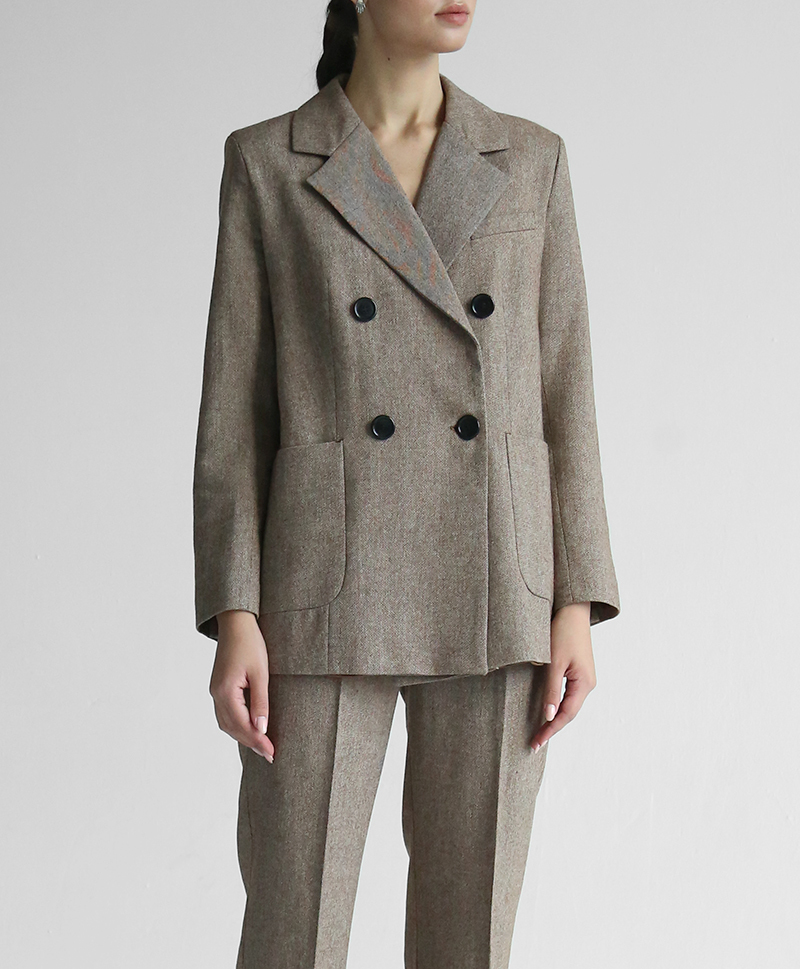 Двубортный пиджак из шерсти. Застежка на пуговицу, два нашивных кармана.