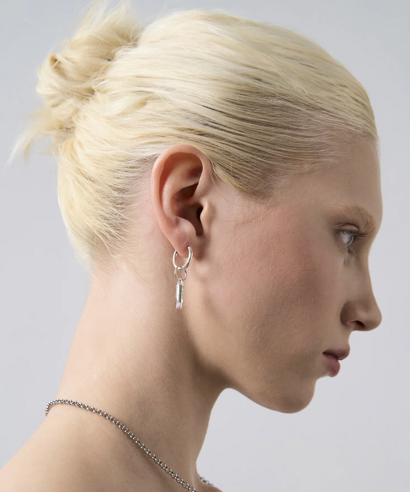Моносерьга "Сlassic" + турмалин/аквамарин/кварц в серебряной трубке "Amulet Tube (М)"