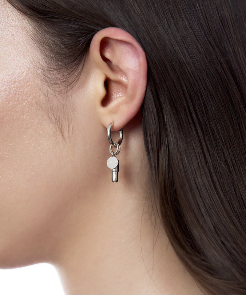Моносерьга круглой формы "Classic" с шармами в виде круглой таблетки и пилюли.