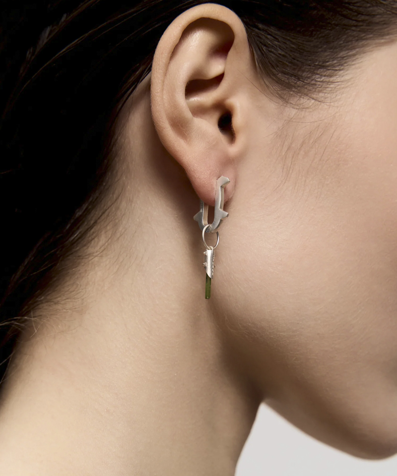 Моносерьга "Thorn" + турмалин/аквамарин/кварц в серебряной рамке "Amulet Thorn (S)"