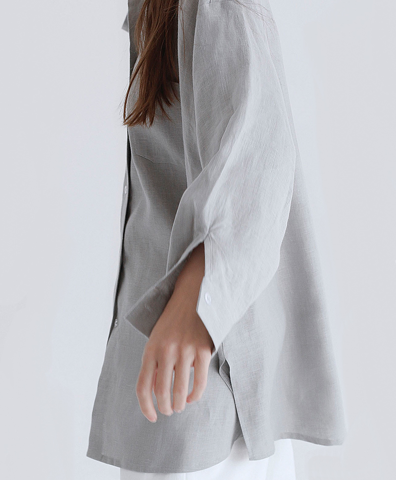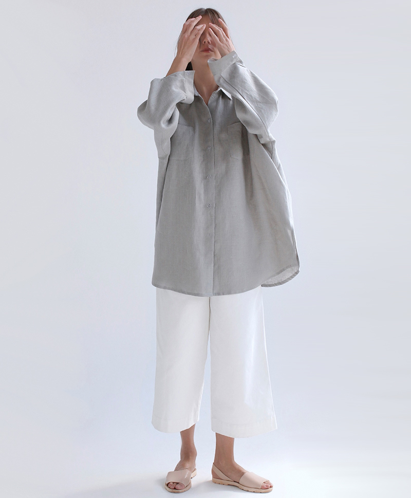 Рубашка из 100% льна. Крой oversize, длинный рукав, два нагрудных кармана.