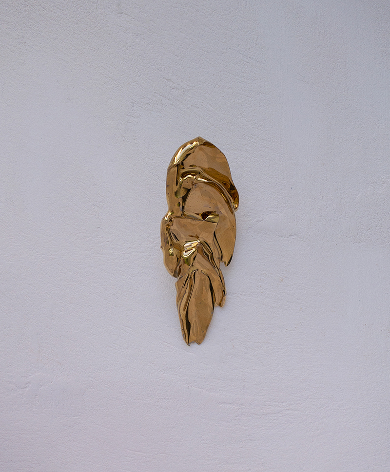 Среднего размера Моно-серьга выполненна в технике пастозной живописи из фарфора. Покрыта золотосодержащей краской. Может крепиться на гвоздик или клипсу. Интерсно сочетать несколько моно-серег на клипсах на одном ухе. Все мазки разные, не повторяются.