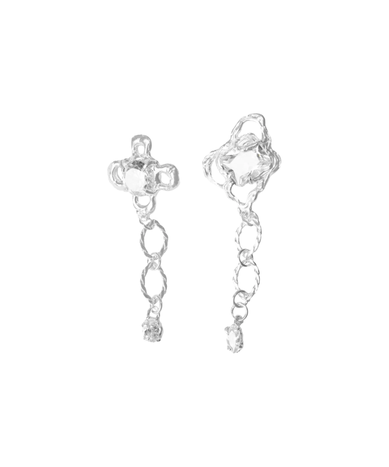 Асимметричные серьги с фактурной поверхностью и цепочками разной длины. Нерегулярные формы создают ощущение подчёркивают современный характер изделия. Лёгкая выразительность и универсальный серебристый оттенок делают модель акцентом для любого образа.